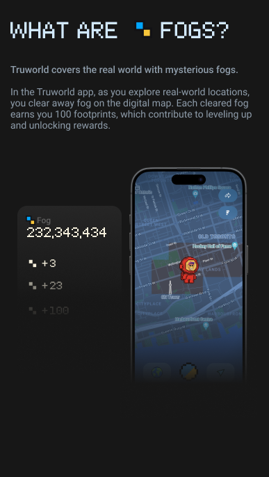 We pioneer the overlaying of a 1:1 digital "fog" layer over the real world, where users uncover this fog as they explore, similar to the “fog of war” in games. Users also accumulate experiences through daily tasks, which help them level up and gain rewards, encouraging daily exploration and activities.